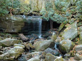 One of the other interesting sites is a stone cairn that I have heard referred to as "The Pulpit". It was supposedly built by the CCC during the Great Depression. I photographed myself standing on it
