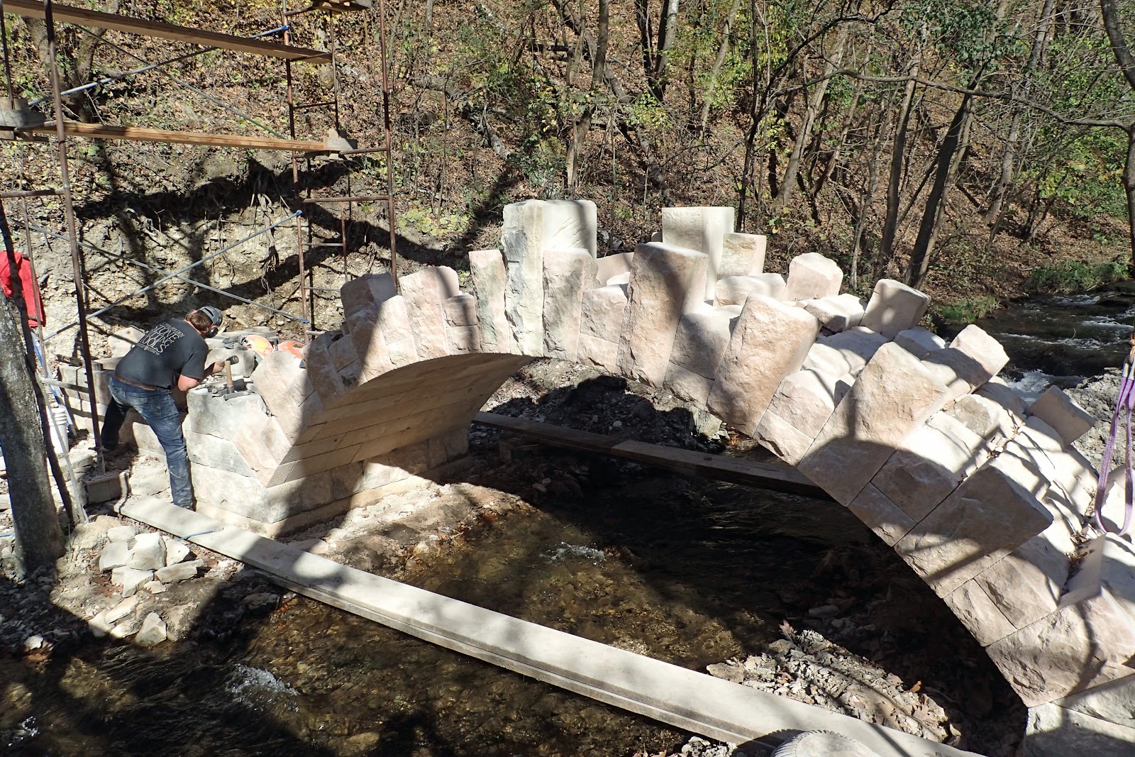 Wanting to see a little bit more, Noelle, Sierra an I walked past some gentlemen working on a neat looking stone bridge