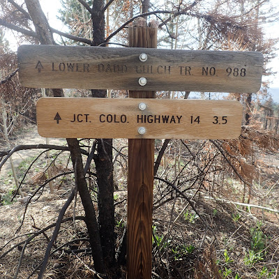 After a morning watching Sierra at her swim lesson and doing a few chores around the house, I packed the car with my camping gear and hit the road, bound for the Poudre Canyon of northern Colorado. It was a pretty uneventful drive. I found a campsite at the Dutch George Campground and then headed over to the Lower Dadd Gulch Trailhead for my hike.
